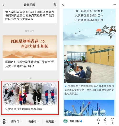 12月5日,青春国网公众号发表《守护温暖过冬的国网青春身影~》集合稿,分部相关工作情况入选刊登,现转载如下。