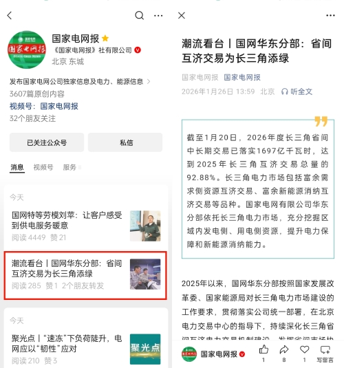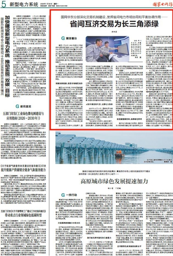 1月26日,《国家电网报》、国家电网报公众号先后报道国网华东分部深化交易机制建设,推动省间互济交易为长三角添绿相关情况,现全文转载如下。