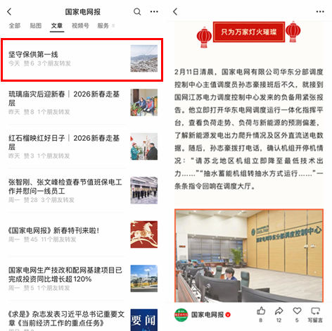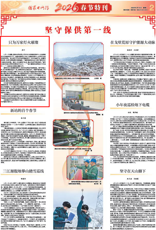 春节假期,《国家电网报》春节特刊和国家电网报微信公众号先后发布了各单位坚守保供第一线工作特写,华东分部相关报道入选刊登,现转载如下。